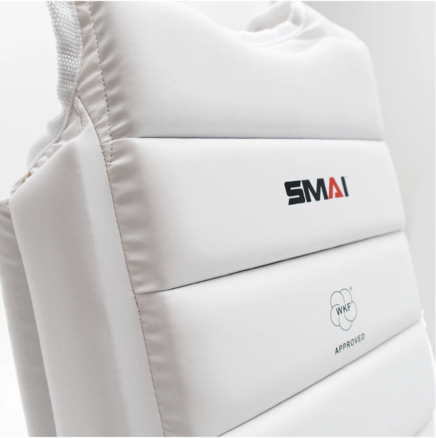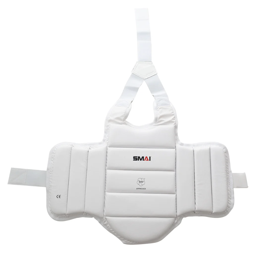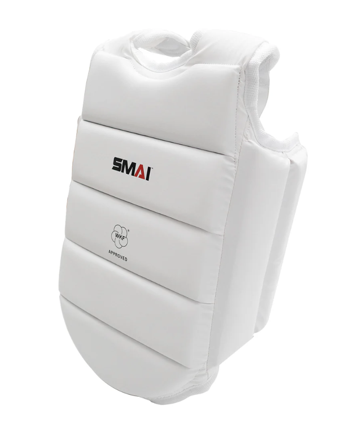 Le plastron de protection extérieur SMAI, homologué WKF pour enfants offre une protection optimale grâce à la densité de son rembourrage. Fabriqué avec un rembourrage en mousse EVA de 4 cm d'épaisseur. Il est très apprécié car il ne gêne pas les mouvements.