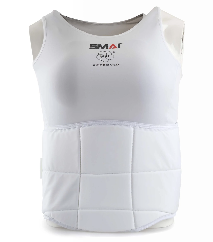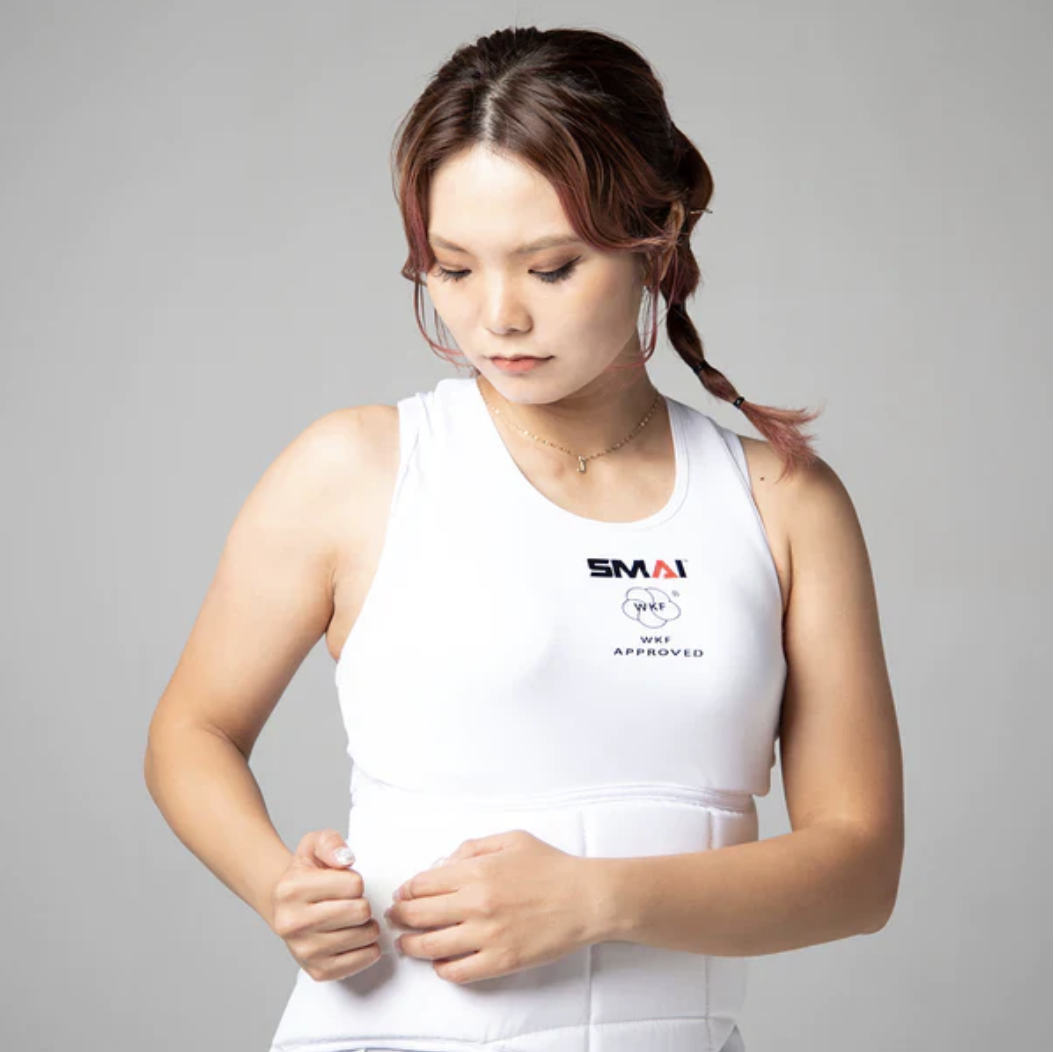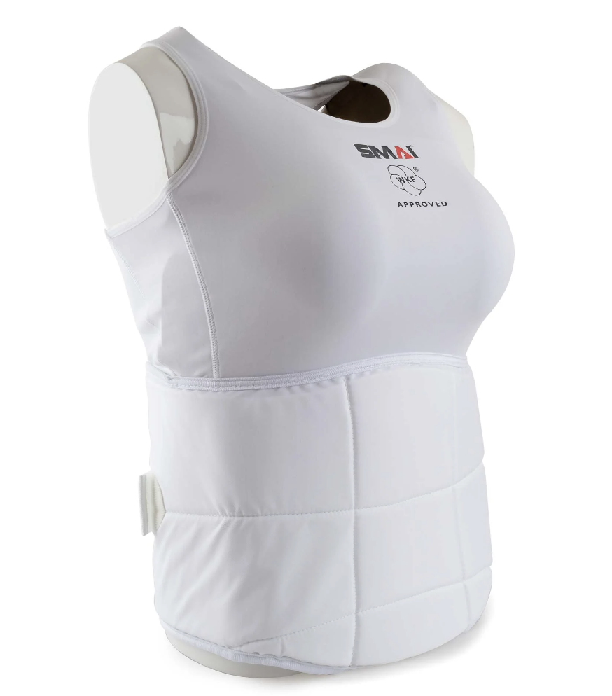 Conforme aux spécifications de la Fédération mondiale de karaté (WKF), le plastron féminin SMAI homologué WKF peut être utilisé lors de toutes les compétitions internationales de la WKF. Ce plastron est testé et approuvé selon les normes CE EN 13277/1:2000, EN 13277/3:2014 et EU 2016/425.